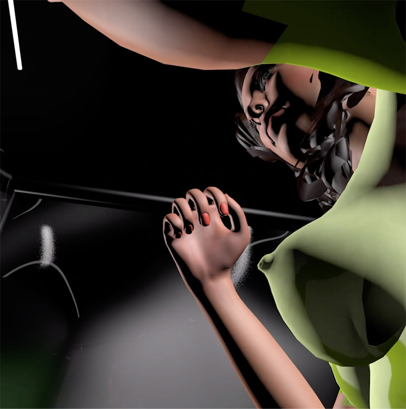 F.r.@.m.e. shows an avatar with optimised female body features, Monika, keeping fit according to an exercise plan adapted to the physical limitations imposed by the COVID-19 pandemic. The constant repetition of these dynamic poses suggested by generic websites for digital female characters, as well as the monotony of Monika’s breathing, point to the ongoing physical and mental imprisonment caused by the pursuit of certain feminine ideals that are prevalent in both the analogue and virtual worlds.