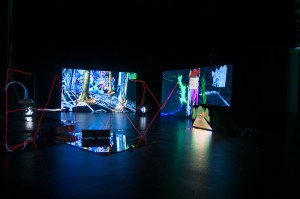 HGK Dreispitz, 5-channel video, audio, light sculptures, mirror